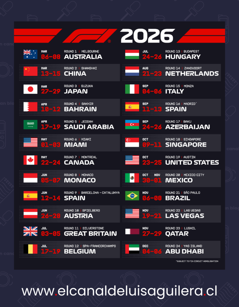 - F1: Calendario de competencias 2026 - 05/01/2026